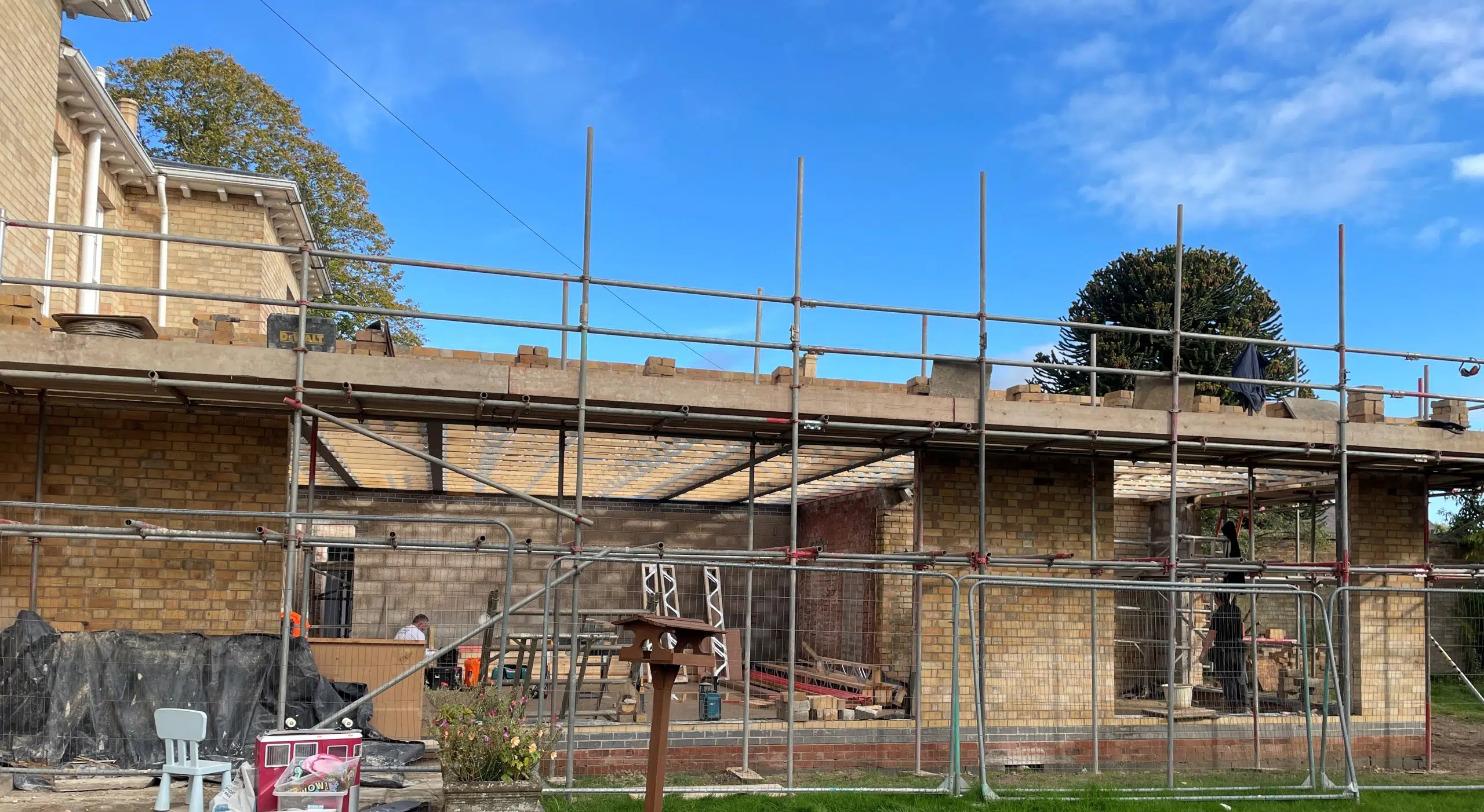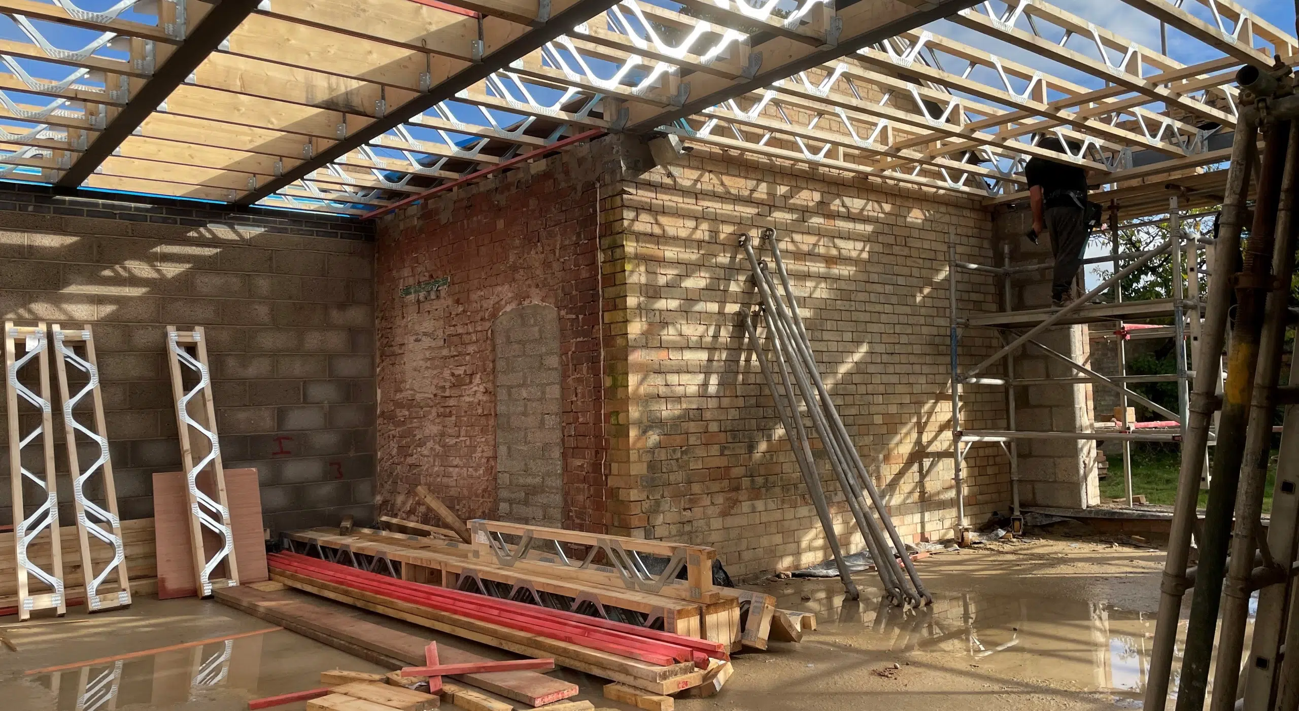 One of our latest site visits has seen the progress of a project getting to the roof stage. It’s fascinating seeing it all coming together and getting to view the workmanship involved as soon it will all be hidden by the internal finishes to create a glorious new large open plan kitchen and dining area, complemented with a winter snug and a summer snug.
