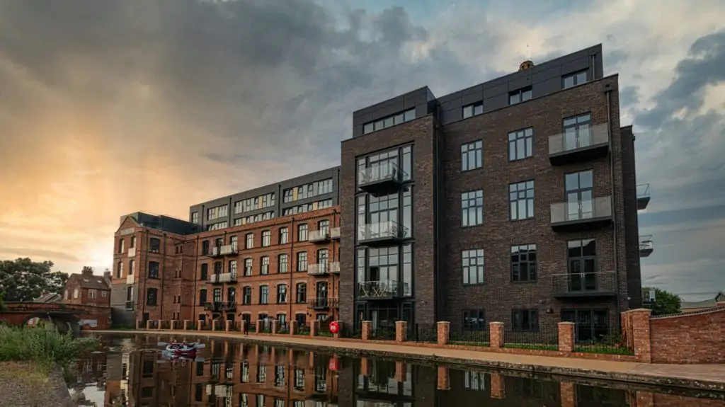 The Mill, a former Victorian hosiery mill built in 1889 that once supplied to the royal family, has been stylishly redeveloped into 76 luxury apartments as part of a dynamic waterside village development that sees it becoming a gateway hub into Loughborough, fusing the area with the town centre, as well as facilitating neighbourly business expansion and being a catalyst for regeneration.