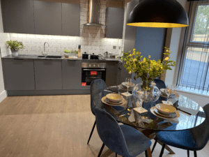 Each apartment benefits from individual boilers, underfloor heating and LED lighting, thereby contributing to energy efficiency and making them cosy too. Whilst parking is provided, because the development is within walking distance of the town centre, bus routes and the train station, alterative travel choices are an easy option, thereby further enabling sustainable living. A nearby park provides perfect local recreation space.