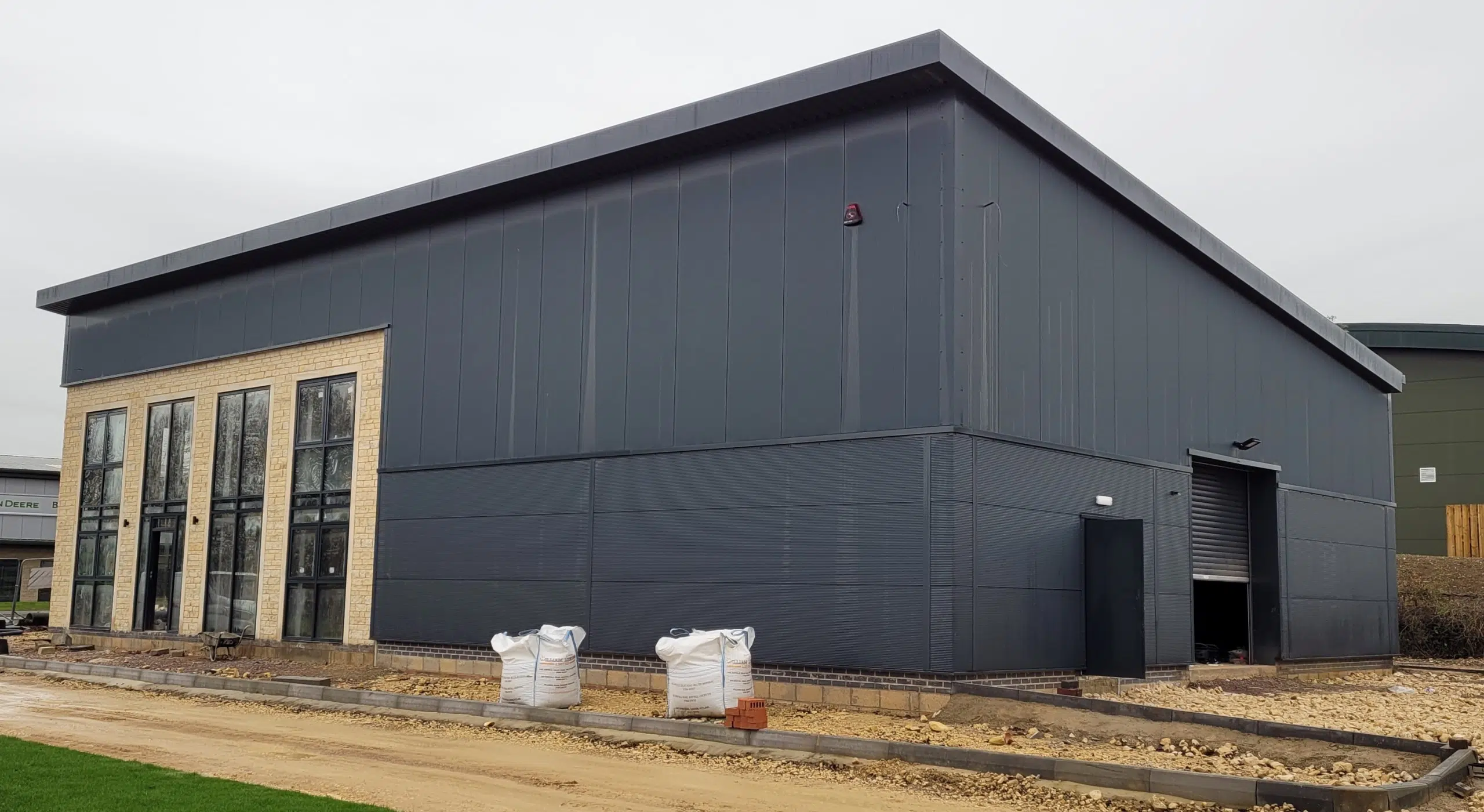Designed by HSSP Architects, this modern dark grey clad building has a screen of glazing to flood natural daylight into the front part of the space which is spread over two floors, and is beautifully contrasted with elements of natural stone to complement the character of Rutland.